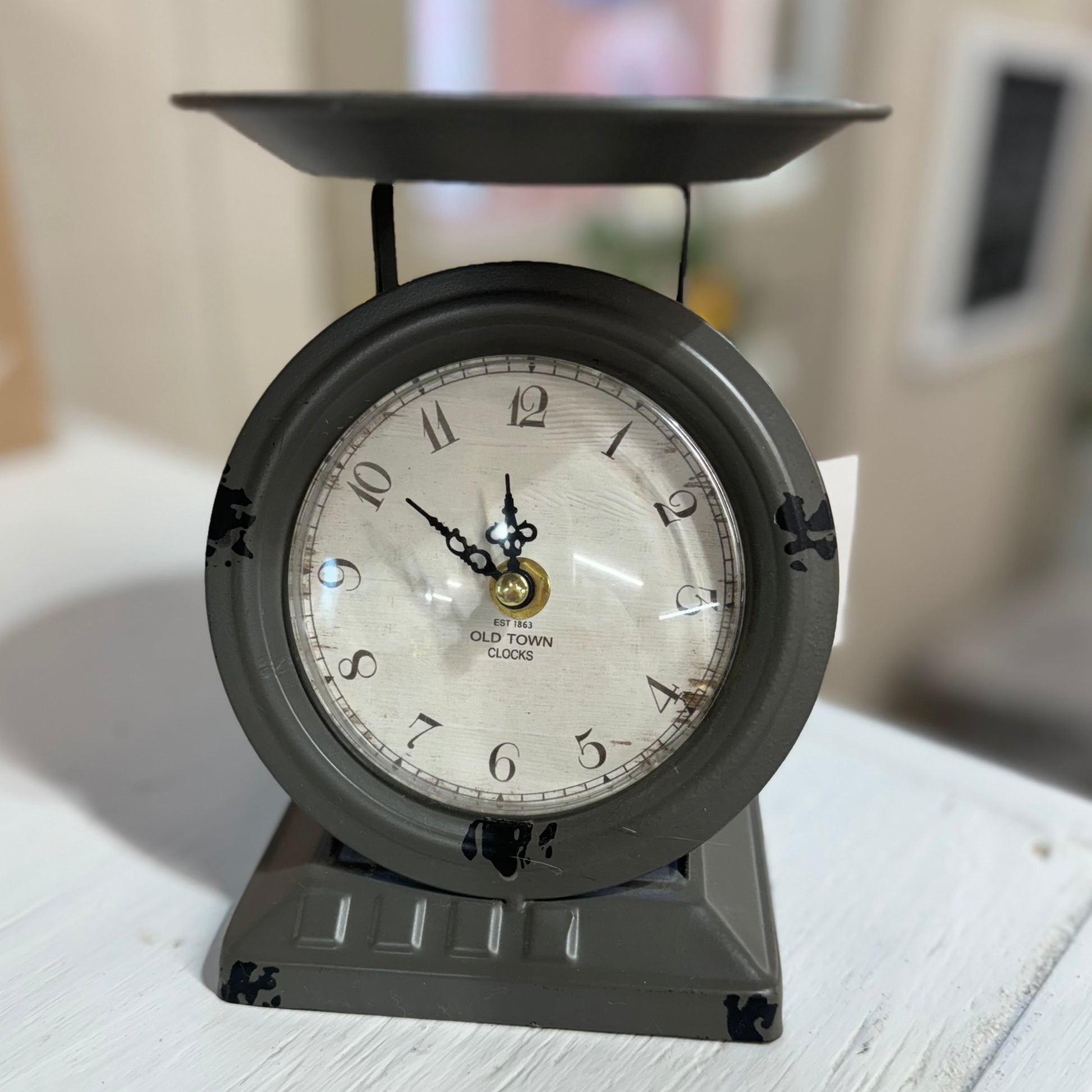 Distressed Gray Metal Clock
