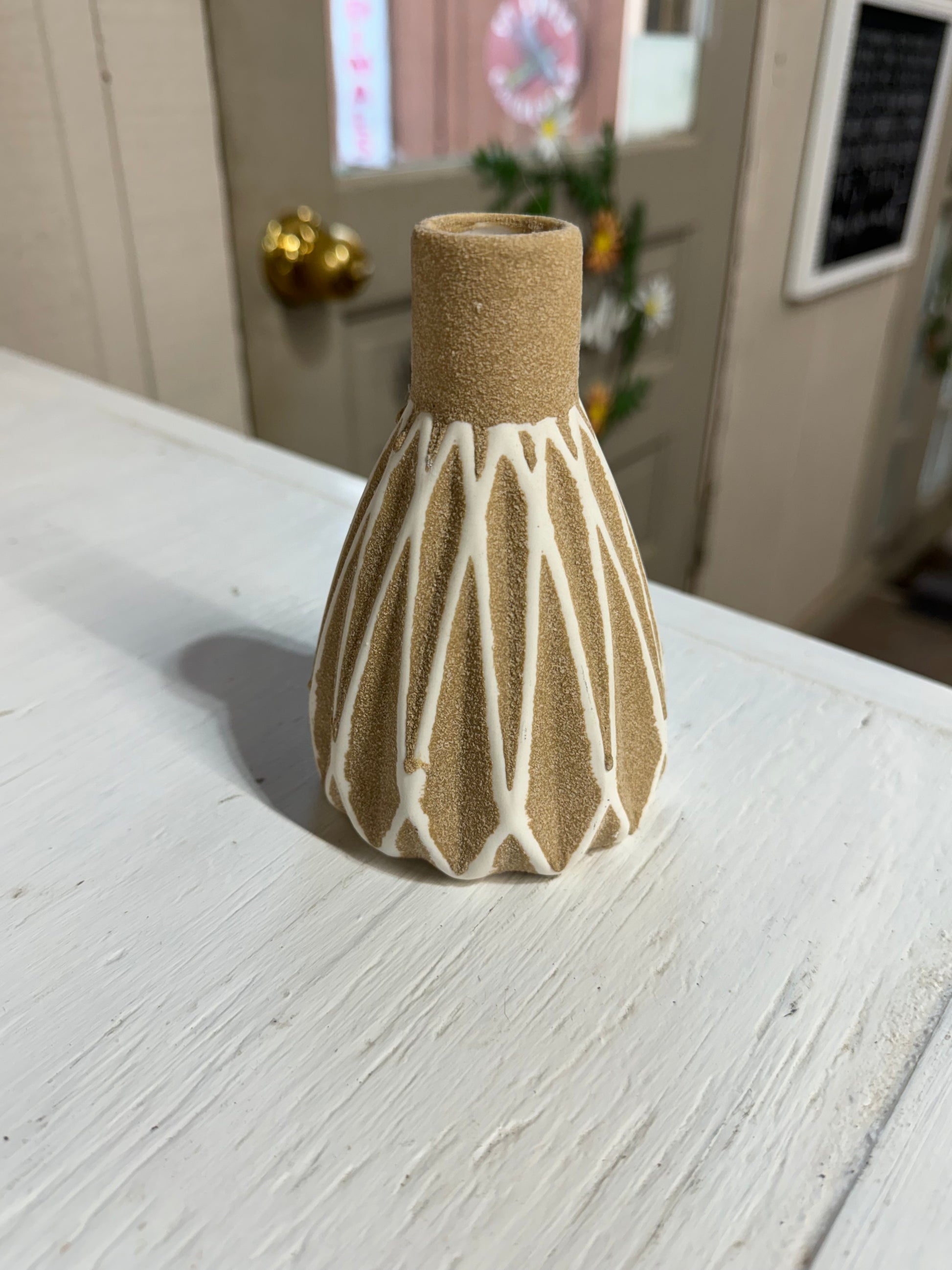 Tan & White Sandy Textured Vase